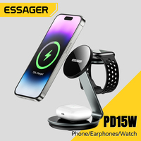 ESSAGER 15W 3-in-1 Magnetic Wireless Charging Station Foldable Charger Stand for iPhone AirPods Watch Phone Holder Fast Charger $32.21