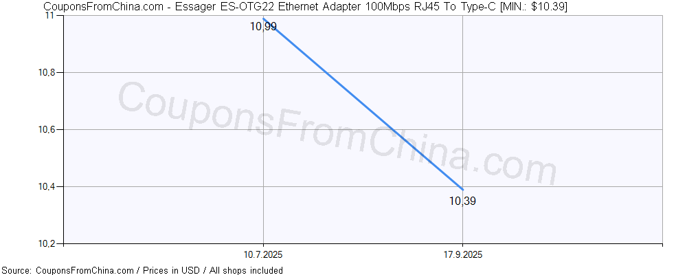 Click on image to enlarge. Price history for Essager ES-OTG22 Ethernet Adapter 100Mbps RJ45 To Type-C