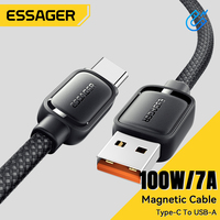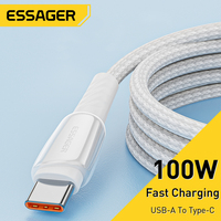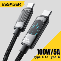 ESSAGER 100W Type-C to Type-C Cable Fast Charging Data Transmission Thick Tinned Copper Core Line 1M/2M Long for Huawei Mate50 for Samsung Galaxy S23 for Oppo Reno9 for Xiaomi13 pro for Redmi K60 – Black 1M