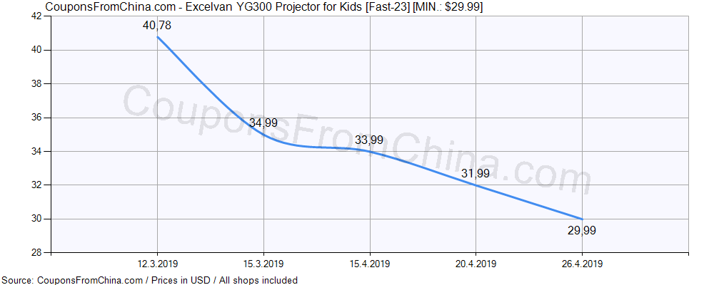 Do you need price history chart (for all/most countries) for Excelvan YG300 Projector for Kids [Fast-23]? There we go. The lowest price was: $29.99.