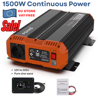 FCHAO Pure Sine Wave Inverter 1500W 12V to 220V 230Vac Power Inverter for Car, Home, Camping, RV