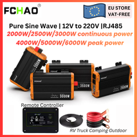 Fchao 2500W Pure Sine Wave Car Inverter: 12/24V DC to 230V 50Hz AC, EU Socket, LCD Display, Remote Control, RJ485, for Home, RVs