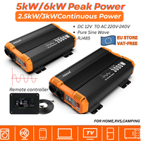 Inverter Pure Sine Wave 2500W/3500W/4500W/5000WDC 12V/24V to AC 220V 230V Voltage Transfer Converter Charging Adapter EU Socket