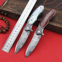 Hot Selling Damascus Steel Folding Tactical Combat Knife Pocket Knives Wood Handle Utility Survival Outdoor Hunting Tools EDC $13.40