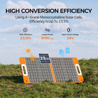 Flashfish Tsp60 Portable Foldable Solar Panel 60W23% Energy Conversion Rate Outdoor Waterproof Camping Solar Charging Panel $87.96