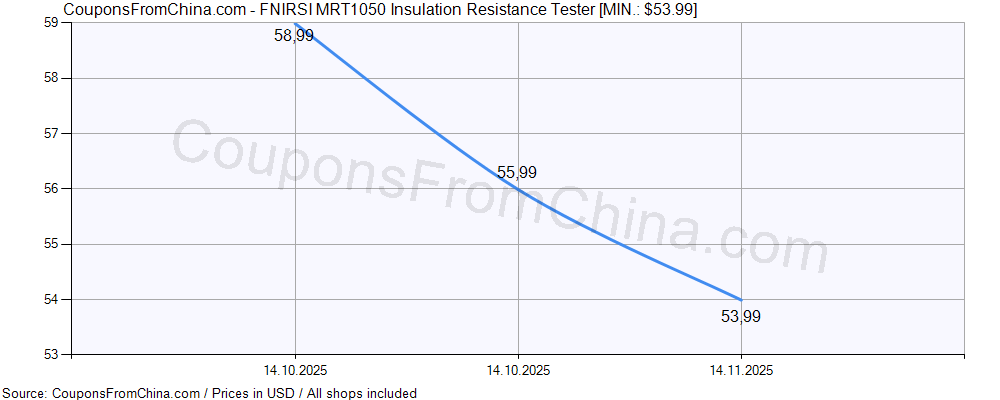 Check out price history chart (for all/most countries) for FNIRSI MRT1050 Insulation Resistance Tester. The lowest price was: $53.99.
