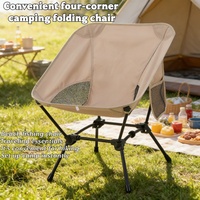 Square Structure Beach Fishing Stool, Convenient Four-Corner Camping Folding Chair, Lightweight Iron Tube Moon Chair