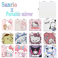 Cute Sanrio Makeup mirror Portable Small Mirror Hello Kitty Cinnamoroll Melody Folding Mirror Double-Sided Pattern Gift For Girl