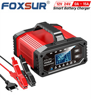 FOXUR 12V 24V 7 Charge Stages Portable Car Motorcycle Battery Charger For Calcium Gel AGM Wet LiFePO4 Lead Acid Battery