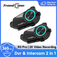 Freedconn 1000m Motorcycle Dash Cam Intercom 6 Person Group Tallk bluetooth Headset Helmet Recorder WiFi App Motorbike Motor Auto DVR Headphone R3