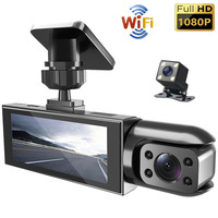 Full HD 1080P Car DVR Dash Cam 2-inch IPS Screen Front Inside Rear 3 Lens Recorder WIFI APP Control 24h Parking G-Sensor