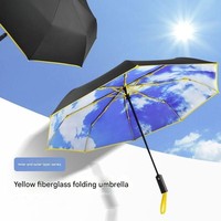 High-end Fully Automatic Folding Solid Double-layer Blue Sky and White Cloud Umbrella for Both Sunny and Rainy Days Dual-use