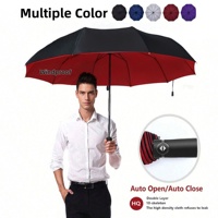 Ten Bone Three Folding Automatic Large Rain Business Parasol, Women’s and Men’s Double Layer Windproof Umbrella
