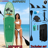 Funwater Inflatable SUP Board 11′ 335cm Green Palm Tree Camera Mount Kayak Seat Hybrid Kit Nature Paddle Board SUPFW37C