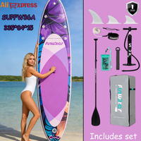 FunWater 11′ Inflatable SUP Board Floral Design 335cm Stand Up Paddle Board for Women Purple Kit Camera Base 165KG Load