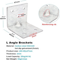 Steel L Right Angle Bracket, Reinforcing Rib Corner Brace for Timber Connector Wood Shelves, Furniture, Cabinet 20PCS 1-7/8\