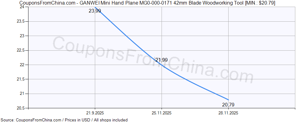 Price history (for all/most countries) for GANWEI Mini Hand Plane MG0-000-0171 42mm Blade Woodworking Tool is here. The lowest price was: $20.79.