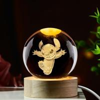 6CM Kawaii Lilo & Stitch 3D Crystal Lights Lamp Glowing Night Light Cartoon Crystal Ball Night Lights Bedside Light Home Decor $4.06