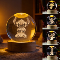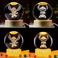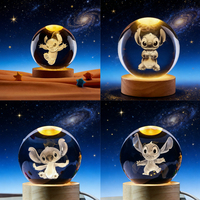 2026 3D Crystal Ball Toy Glowing Stitch Mickey Cartoon Warm Light Night Light Desktop Decoration Children Birthday Gift Toy $7.79