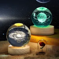 Unique 3D Crystal Ball Night Light Led Lamp Bedside Table Glowing Galaxy Lamp Saturn Planets Moon Children Birthday Gift Toy 5cm $29.75