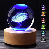 3D Crystal Lights Lamp RGB Glowing Planetary Galaxy Night Light Crystal Ball Night Lights Bedside Home Decor Christmas Gift $13.56