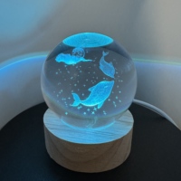 Crystal ball 3D carved small night light glowing glass ball gift desktop ornament, birthday gift wholesale $16.25