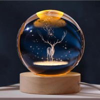 Christmas Crystal 3D Laser Inner Carving Ball Night Light Sphere Xmas Deer Santa Engraved Glowing Niche Gift Home Decoration $13.18
