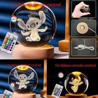 Stitch cartoon crystal ball glowing, 3D carved small night light, desktop decoration creative gift $9.73