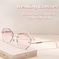 Butterfly Style Frameless Cut Edge Gradually Pink Lens Reading Glasses Anti Blue Light Ultra Light Diamond Presbyopia Glasses | $3.70 |