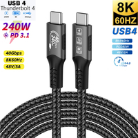 USB4 Cable 40Gbps 240W 8K For Thunderbolt 4 Type C Fast Charging Thunderbolt3 USB 4.0 USB C to C Data Transfer Cable For laptop