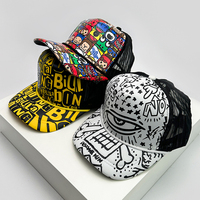 New Fashion Men Women Printed Cartoon Baseball Caps Breathable Sunshade Versatile Korean Hip Hop Half Mesh Hats ins Trend Street $4.06