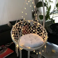 Cotton Rope Hanging Chair For Adults And Children Round Household Swing Hammock Nordic Style Indoor Hanging Chair With Stand