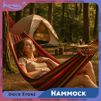 Outdoor Canvas Hammock Camping Thickened Outdoor Swing Net with Tree Ropes Hed Anti Rollover Striped Hanging Chairs Hammock