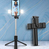 1pc New Bluetooth Selfie Stick with Extendable Telescopic Pole LED Fill Light Phone Holder Mini Handheld All-in-One Tripod Stand $7.21