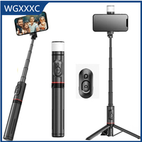 Bluetooth Wireless Handheld Selfie Stick Tripod Extendable Monopod with Remote & LED selfie light for Tiktok Phone Video Live $9.89