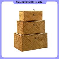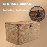 Woven Straw Box with Lid Natural Seagrass Wicker Storage Basket Laundry Container Home Sundries Organizer Decor Storage Box