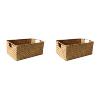 Europe Wicker Storage Basket Rectangular Seagrass Basket Box Woven Rattan Container Shelf Organizer Kitchen Home Bathroom Decor