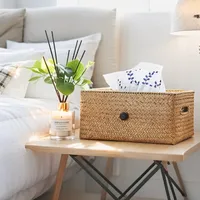 Woven Storage Basket Handmade Natural Seagrass Box Bedroom Decorative ganizer Household Rustic Sundries Holder