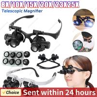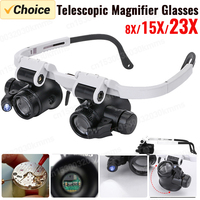 Head-Mounted Microscope Watch Jeweler Repair Magnifier With LED Light 8X 15X 23X Telescopic Magnifying Glasses Reading Loupe Len $5.89