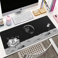 Space Cat Lunar Expedition Mouse Pads – Extra Large Black and White Cosmic Theme Gaming & Office Non-Slip Desk Mat