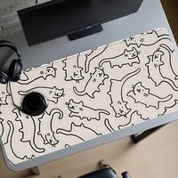 Anime Mousepad Kawaii XxL Mousepad Cats Desk Mat Cute Black On Beige Mouse Pad Extra Large Table Protector Soft Deskmat Deskpad