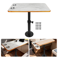 Boat Pontoon Table,80*40CM Removable RV Table with Pedestal Leg, 2 Cup Holders, 46-70CM Adjustable Height, for Caravan RV Marine
