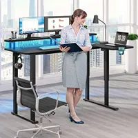 #For L Shaped Standing Desk Adjustable Height with Power Outlets & LED Lights, 63 x 43 Electric Standing Desk with Monitor S