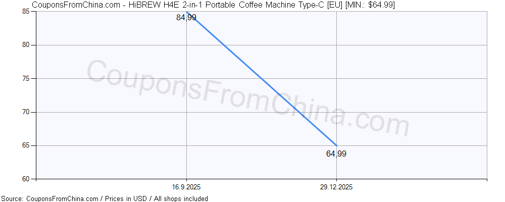 Do you need price history chart (for all/most countries) for HiBREW H4E 2-in-1 Portable Coffee Machine Type-C [EU]? There we go. The lowest price was: $64.99.