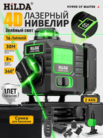 HILDA 4D 16 Lines Laser Level Green line Self-leveling 360 Horizontal And Vertical Super Powerful Green Beam Laser Level With 2 Batteries