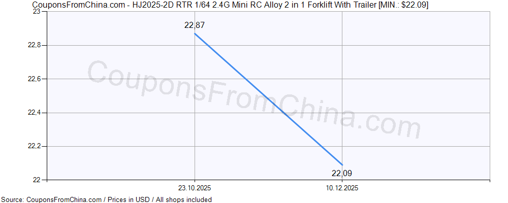 Check out price history chart (for all/most countries) for HJ2025-2D RTR 1/64 2.4G Mini RC Alloy 2 in 1 Forklift With Trailer. The lowest price was: $22.09.