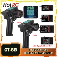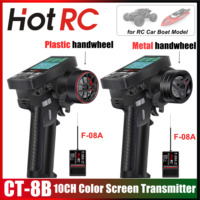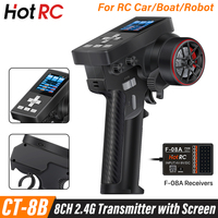 HOTRC CT-8B 2.4GHz 10CH 2.4-Inch TFT Color Screen Radio Transmitter with F-08A PWM Receiver for RC Car Boat Tank Models – Black