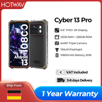 HOTWAV Cyber 13 Pro 150LM Flashlight 20GB 256GB 64MP Triple Camera 6.6 inch FHD+ 10800mAh 20W Fast Charge NFC Android 13 IP68 IP69K Waterproof 4G Rugged Smartphone – Black