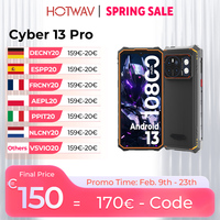 HOTWAV Cyber 13 Pro 150LM Flashlight 20GB 256GB 64MP Triple Camera 6.6 inch FHD+ 10800mAh 20W Fast Charge NFC Android 13 IP68 IP69K Waterproof 4G Rugged Smartphone – Black