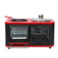 220V 3 In 1 Electric Breakfast Machine Household Bread Toaster Baking Oven FryIng Pan Hot Pot Boiler Food Steamer